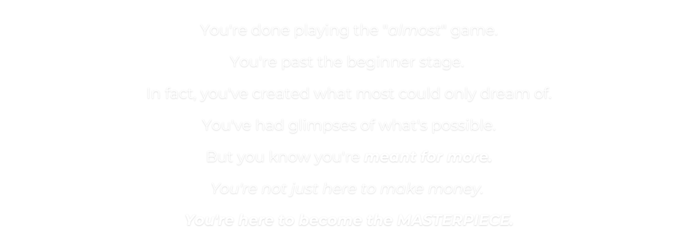 You don't need a dozen programs. You need one high-caliber signature offer that generates consistent $10K–$20K months — supported by a streamlined product suite that elevates your authority and frees your time. We build offers rooted in your brilliance, not industry templates. This is strategic simplicity that scales without the hustle.
