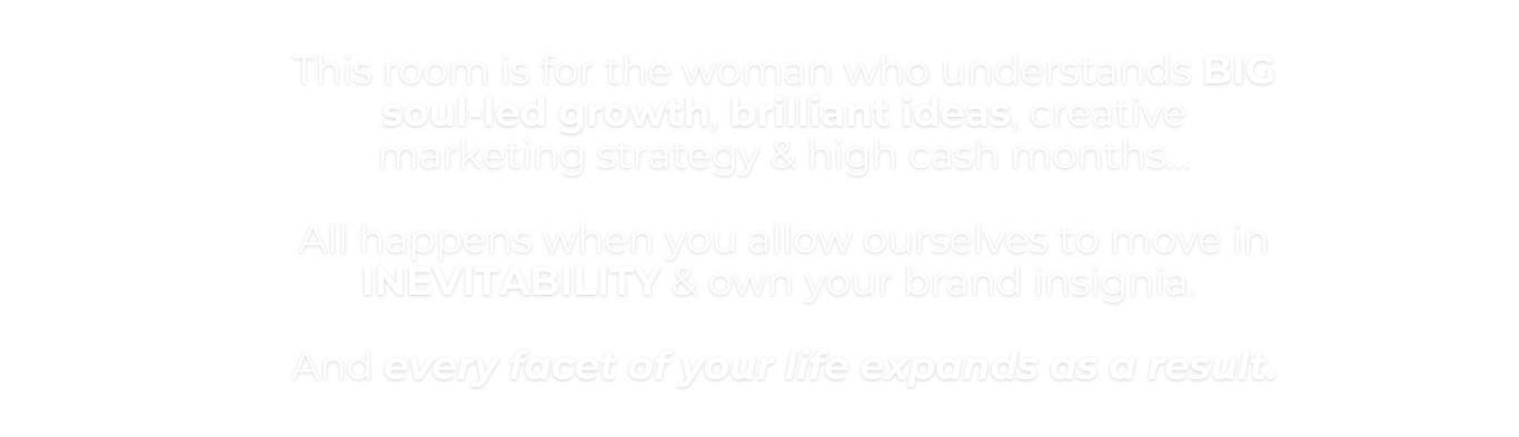 Your content isn't just posting — it's a transmission. Inside this room, you learn to sell through identity, storytelling, and energetic authority — not pushy tactics or over-explaining. We craft messaging that moves your dream clients and a sales strategy that converts high-level women who are ready to rise alongside you. This is magnetic, instinct-driven sales that feel effortless.