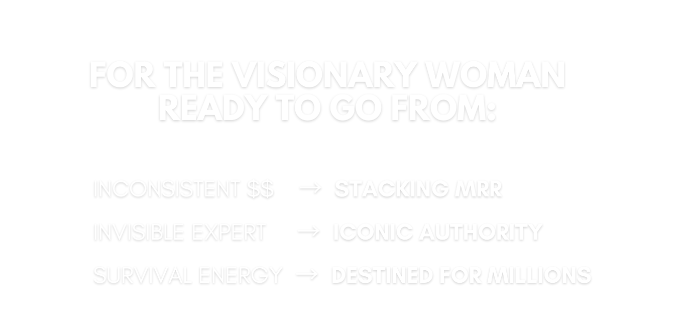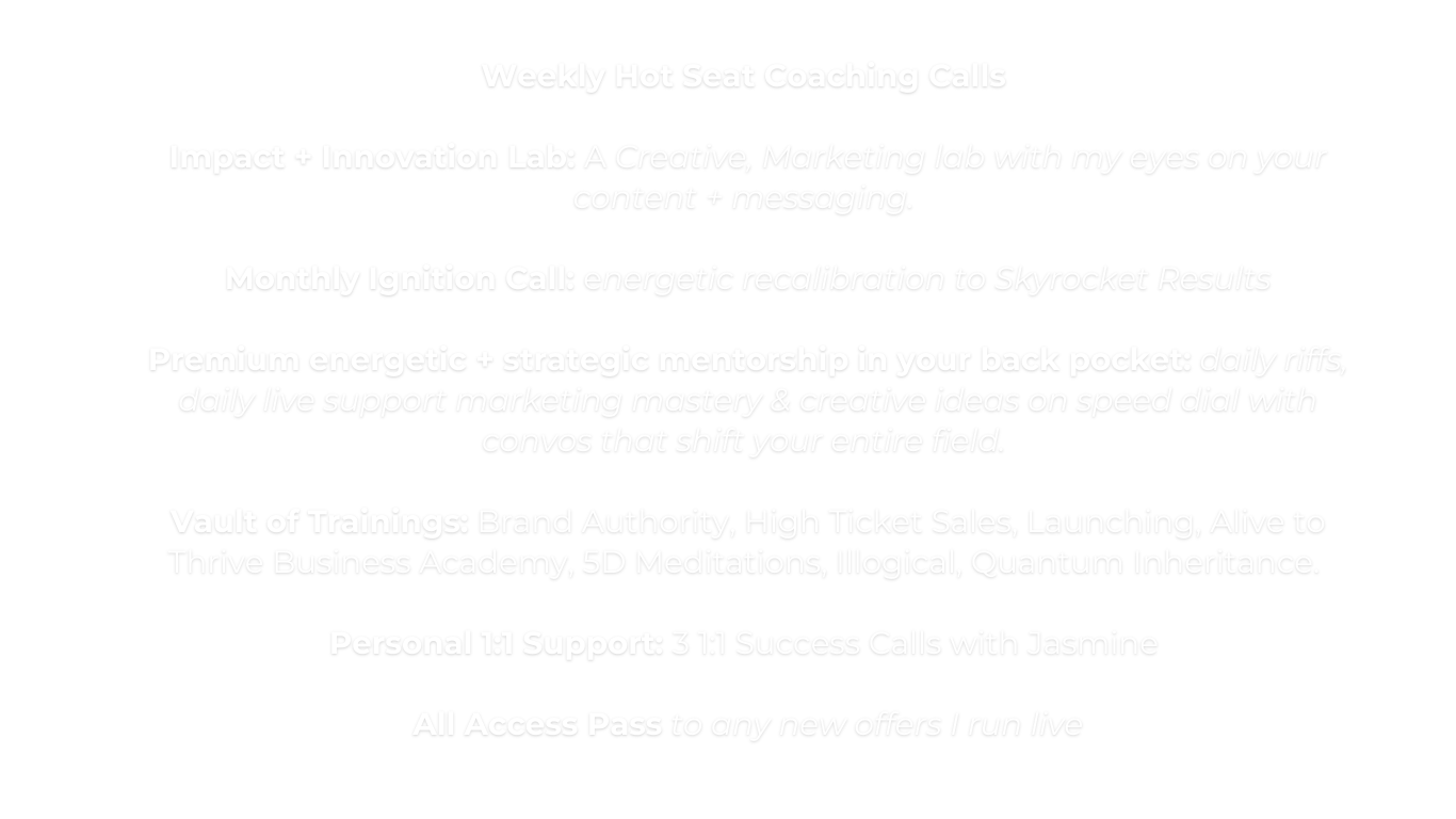 This is where we collapse the timeline. You'll be sharpened, stretched, and met at the deepest core of what you know you're here to do. We ignite next-level leadership conversations, wealth embodiment, and becoming an energetic match for overflow, illogical expansion, and 5D success in the God Zone. This is quantum recalibration rooted in activating your legacy. Â